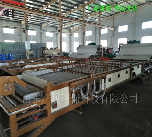 高效网带式过滤(脱水)机,适用于污水处理厂、化工、冶金、选矿、制药、食品、造纸、环保等行业的物料固、液分离,多用于污水处理过程中将浓缩污泥(含水率95—97%)进一步脱水而成泥饼(含水率30—85%)。