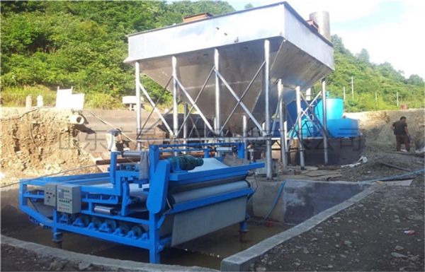 污泥压滤机工作原理过程为:化学预处理脱水-重力浓缩脱水-楔形区预压脱水-挤压辊高压脱水。此时,基本形成滤饼,继续向前至压力尾部的高压区经过高压后滤饼的含水量可降低。