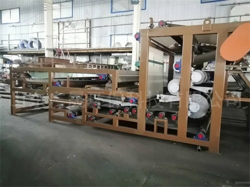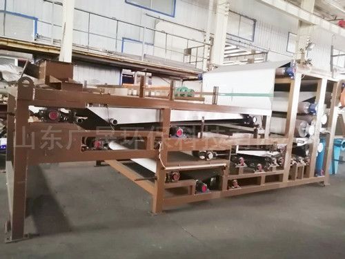 甘蔗渣脱水机是通过两条滤带缠绕在一系列顺序排列、大小不等的辊轮上,利用滤带间的挤压和剪切作用,来脱除料浆中水分的一种压滤设备,具有着能连续作业、自动化程度高、节能、使用维护方便等优点,是一种进行污泥脱水减量化处理的理想设备。